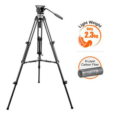 EC610-R - El kit de trípode ultraligero de fibra de carbono E-IMAGE EC610R ofrece excelente estabilidad y portabilidad. Las perillas ergonómicas de ajuste de las patas permiten un ajuste de altura rápido y seguro con bloqueo seguro. Proporciona un funcionamiento suave al grabar con cámaras de video DV y HDV o DSLR. Cuenta con un contrapeso fijo que ayuda al cabezal fluido a soportar cargas de hasta 3 kg (6,6 lb). El espaciador central ajustable del trípode garantiza una mayor estabilidad. Se incluye una bolsa de transporte con espacio suficiente para las patas, el cabezal y el espaciador, para su comodidad.