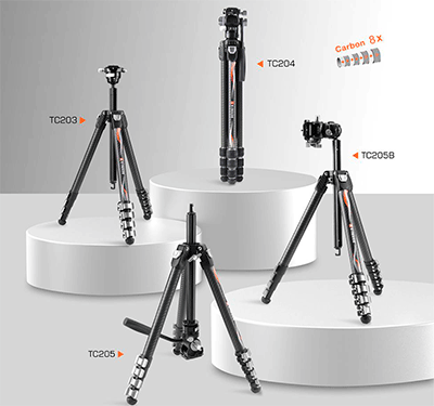 El TC203/204/205/205B es una solución ligera y compacta para creadores de contenido en movimiento. Fabricado en fibra de carbono resistente, con una capacidad de carga de 5 kg y ángulos ajustables, satisface diversas necesidades de grabación. También incluye un gancho de contrapeso y un nivel de burbuja.