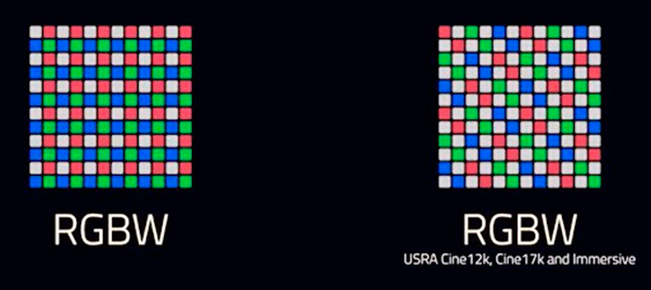 La matriz de filtro de color de la URSA se repite en una cuadrícula de 6x6. La mitad de los fotositos son blancos, y la otra mitad está compuesta por igual número de fotositos rojos, verdes y azules. Esta tecnología es compleja, pero en realidad es fácil de entender. Blackmagic no es la primera empresa en experimentar con sensores RGBW.