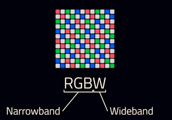 Llamaremos fotositos de banda estrecha a los fotositos R, G y B. Esto se debe a que el filtro situado delante permite que solo un espectro estrecho de luz de color llegue al fotosito. Llamaremos fotositos de banda ancha a los fotositos blancos porque, al no tener filtro de color, reciben un amplio espectro de luz.