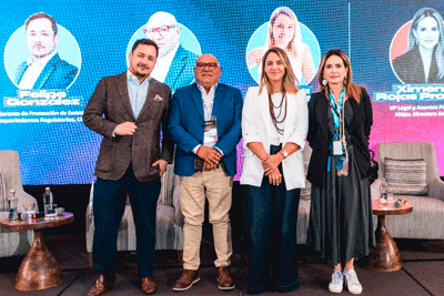 El panel reunió a Felipe González San Martín, director de Regulación y Asuntos Públicos de Claro Chile; Herbert Galiano, representante regional de Randy Labs y especialista en inteligencia aplicada al combate de la piratería; Karina González Duarte, gerenta legal de DIRECTV Latin America; y Ximena Rojas Prosser, abogada, académica y ejecutiva del sector fintech, quien ofició como moderadora.