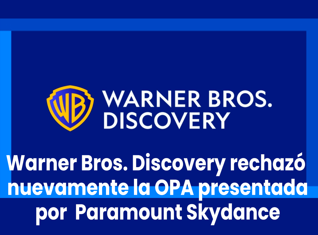 Warner Bros. Discovery, Inc. anunció que su Junta Directiva (la “Junta”) determinó por unanimidad que la oferta pública de adquisición de Paramount Skydance, modificada el 22 de diciembre de 2025, no beneficia a WBD ni a sus accionistas y no cumple con los criterios de una “Propuesta Superior” según los términos del acuerdo de fusión de WBD con Netflix, Inc., anunciado el 5 de diciembre de 2025.
