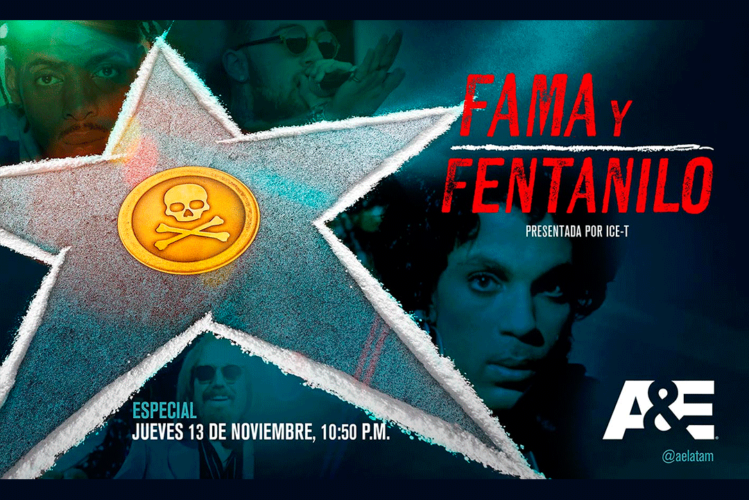 A&E estrena el jueves 13 de noviembre Fama y Fentanilo, un documental presentado y producido ejecutivamente por el rapero, actor, productor y figura de televisión Ice-T que ofrece una mirada cruda y urgente sobre la droga que transformó para siempre el panorama social y cultural de Estados Unidos. A través de historias reales, el especial expone cómo el fentanilo, un opioide sintético 50 veces más potente que la heroína, se convirtió en una tragedia nacional que no distingue fama, edad ni clase social.